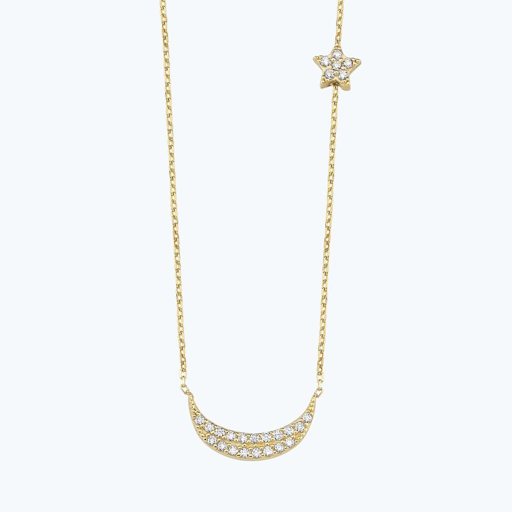 Homepage Bijoux Matériau Or 14 carats Collier Croissant de Lune et Étoile en Or