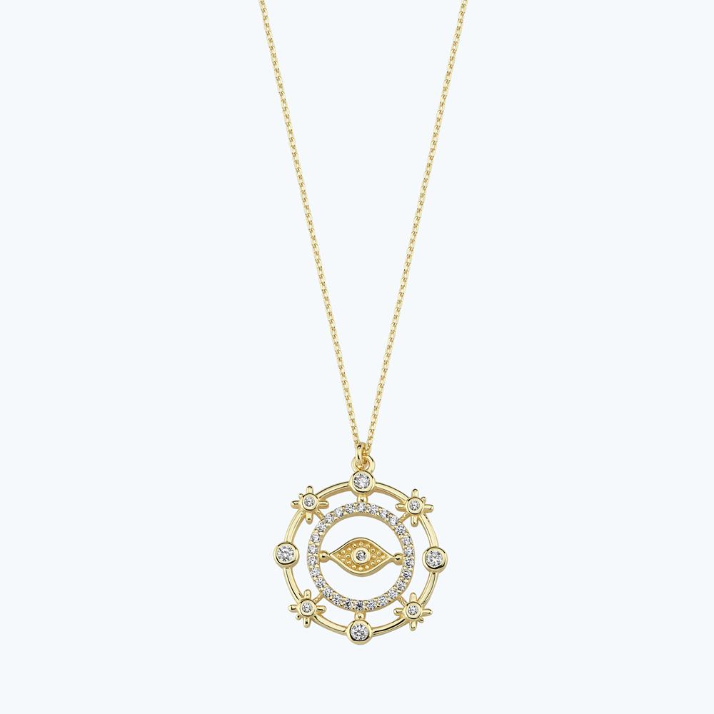 Homepage Bijoux Matériau Or 14 carats Collier Œil Porte-Bonheur en Or avec Pierre