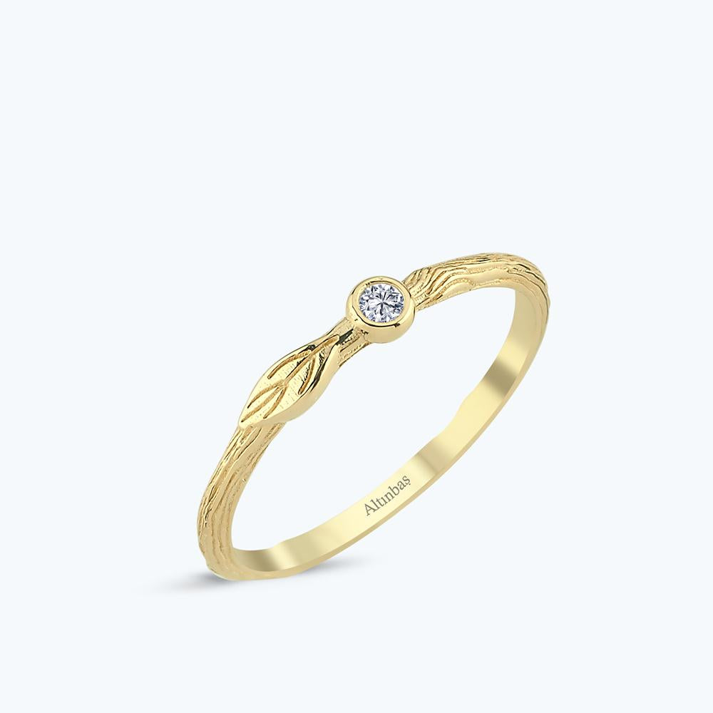 Bague Feuille Solitaire en Or